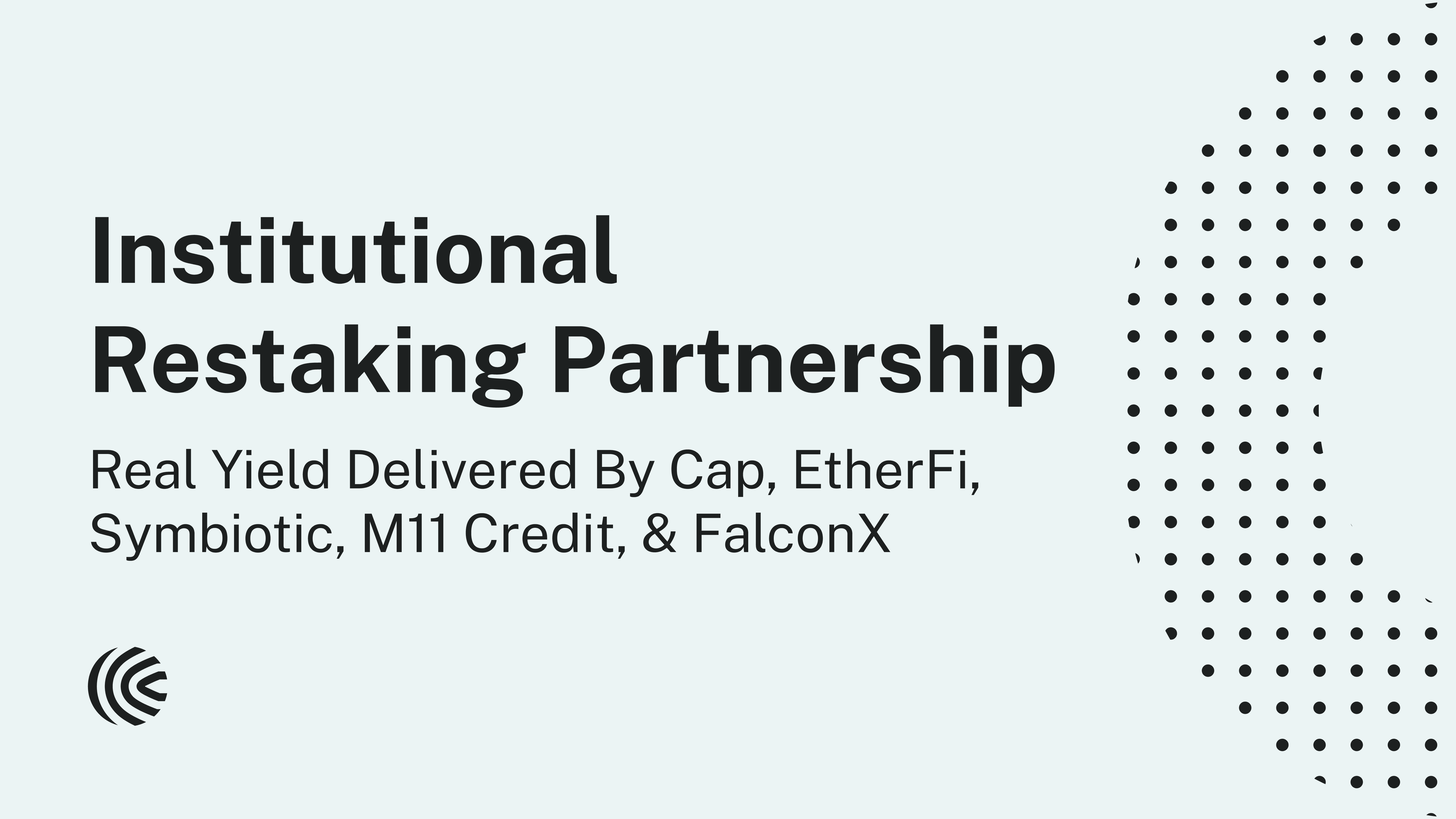 Cap's institutional restaking partnership with EtherFi, Symbiotic, M11 Credit, and FalconX brings real, non-inflationary yield from dollar-denominated institutional lending to ETH holders — marking a milestone for programmable credit and insured private credit onchain.